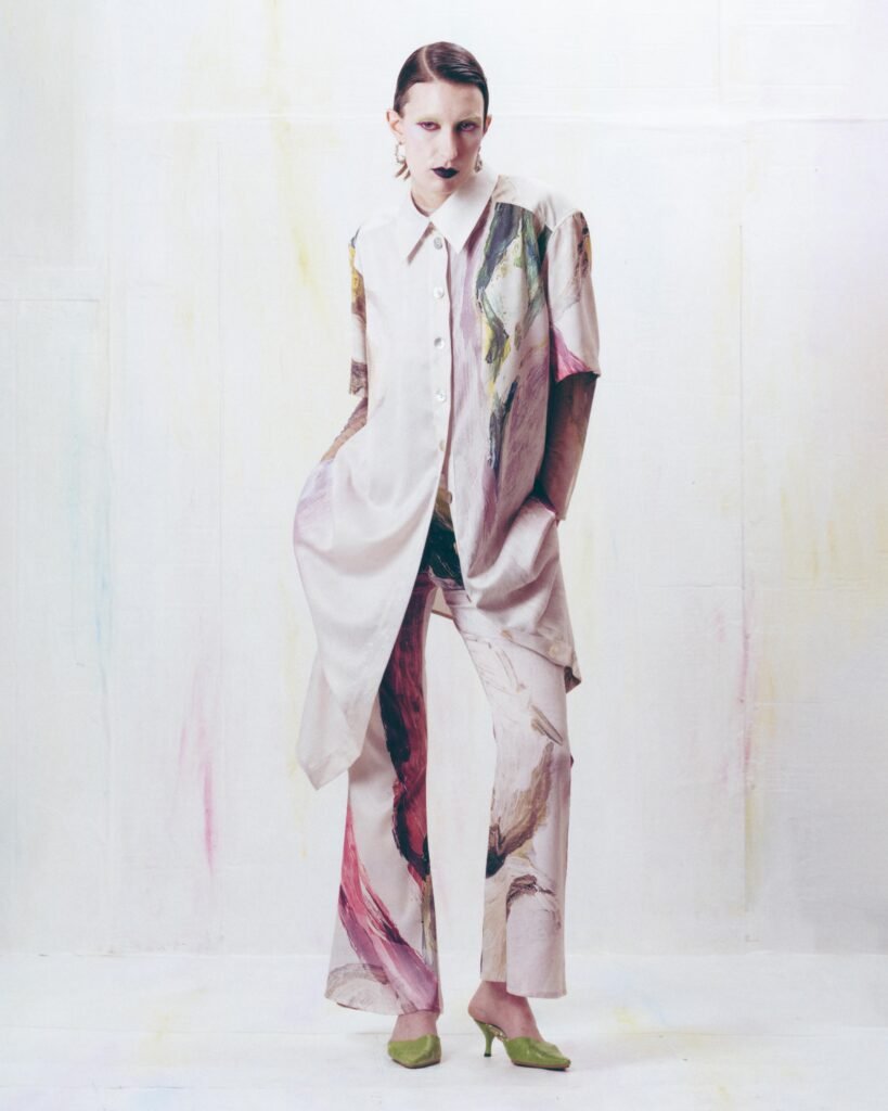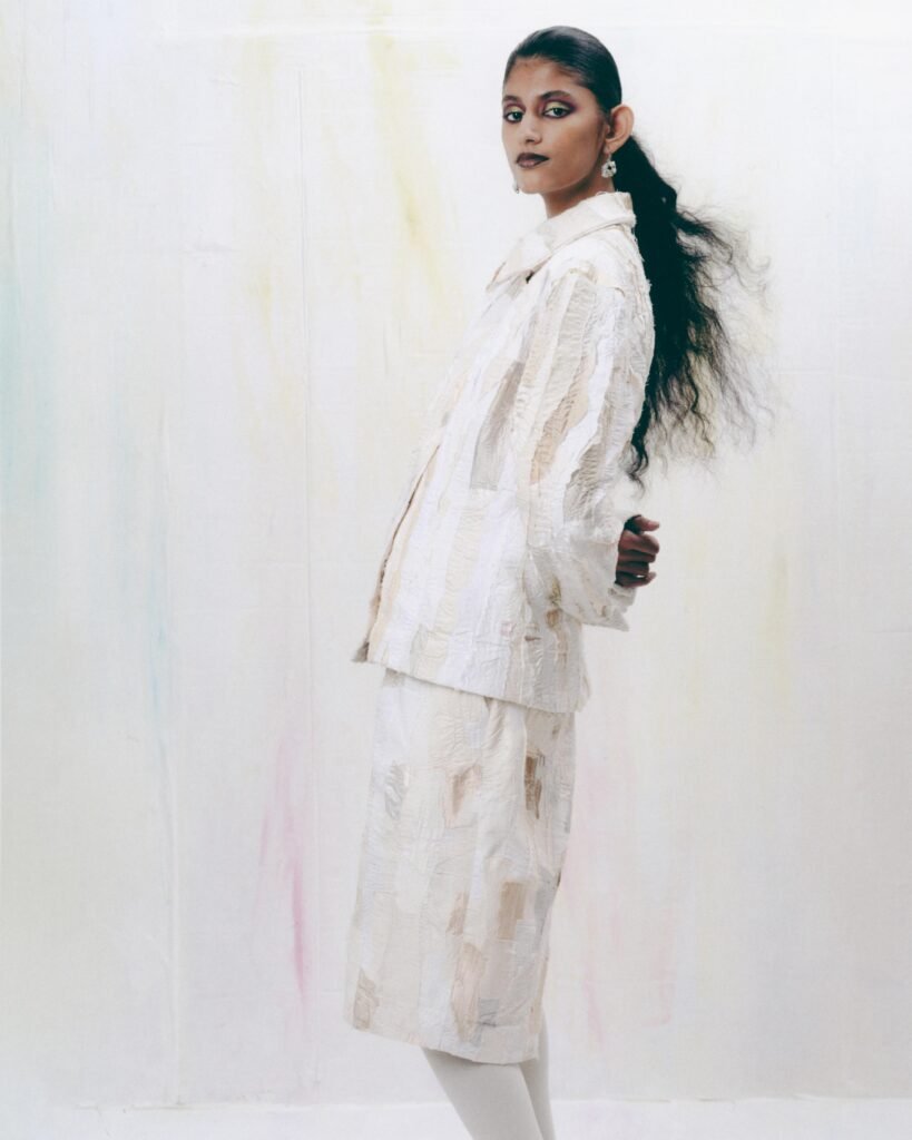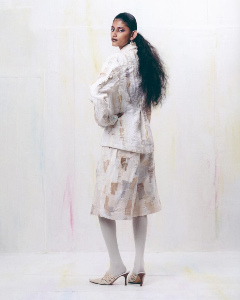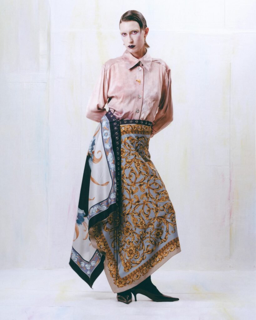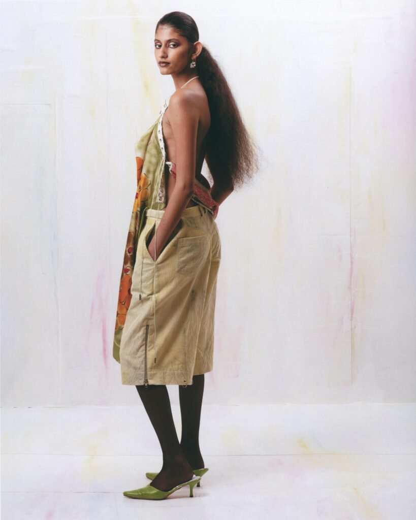 The arum, symbol of the season, embodies the collection’s duality: fragile yet powerful, intimate yet bold. Through recycled patchworks, reimagined scarves, and vintage lace, RAPPAZ continues its commitment to sustainable, one-of-a-kind creations.