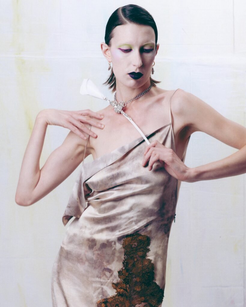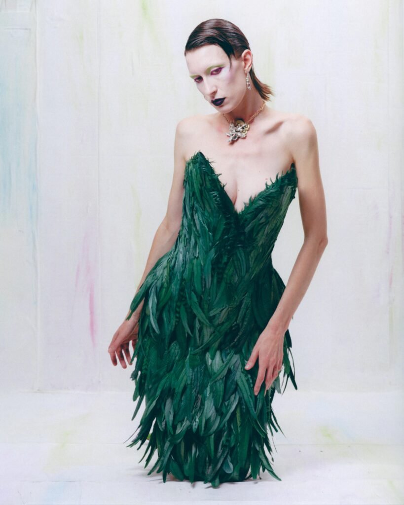 In this spirit, RAPPAZ interprets femininity through gentle forms, subtle tones, and confident sensuality, infused with the raw and untamed energy of punk. The brand’s artisanal craftsmanship and sculptural couture silhouettes remain at the heart of the creative process.
