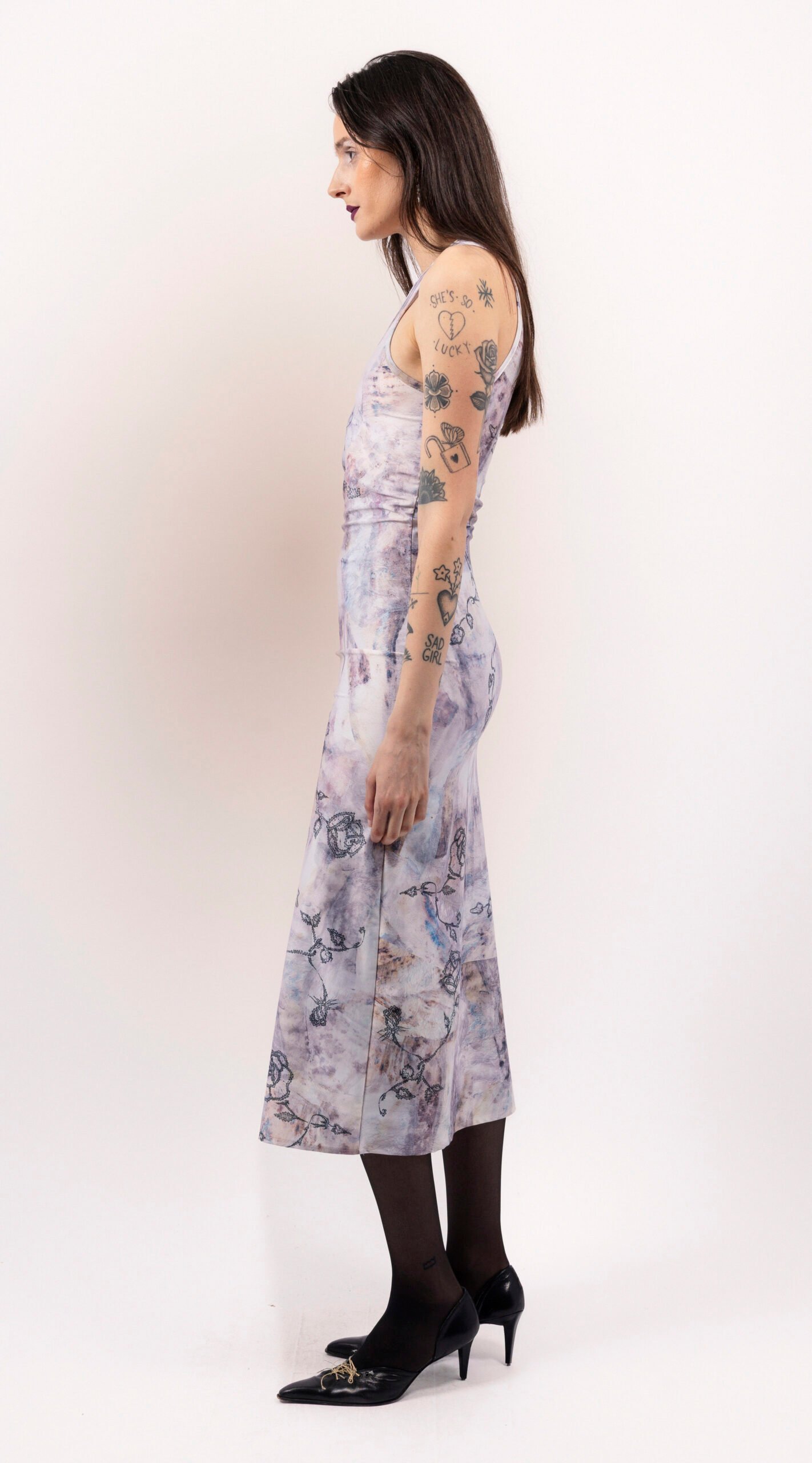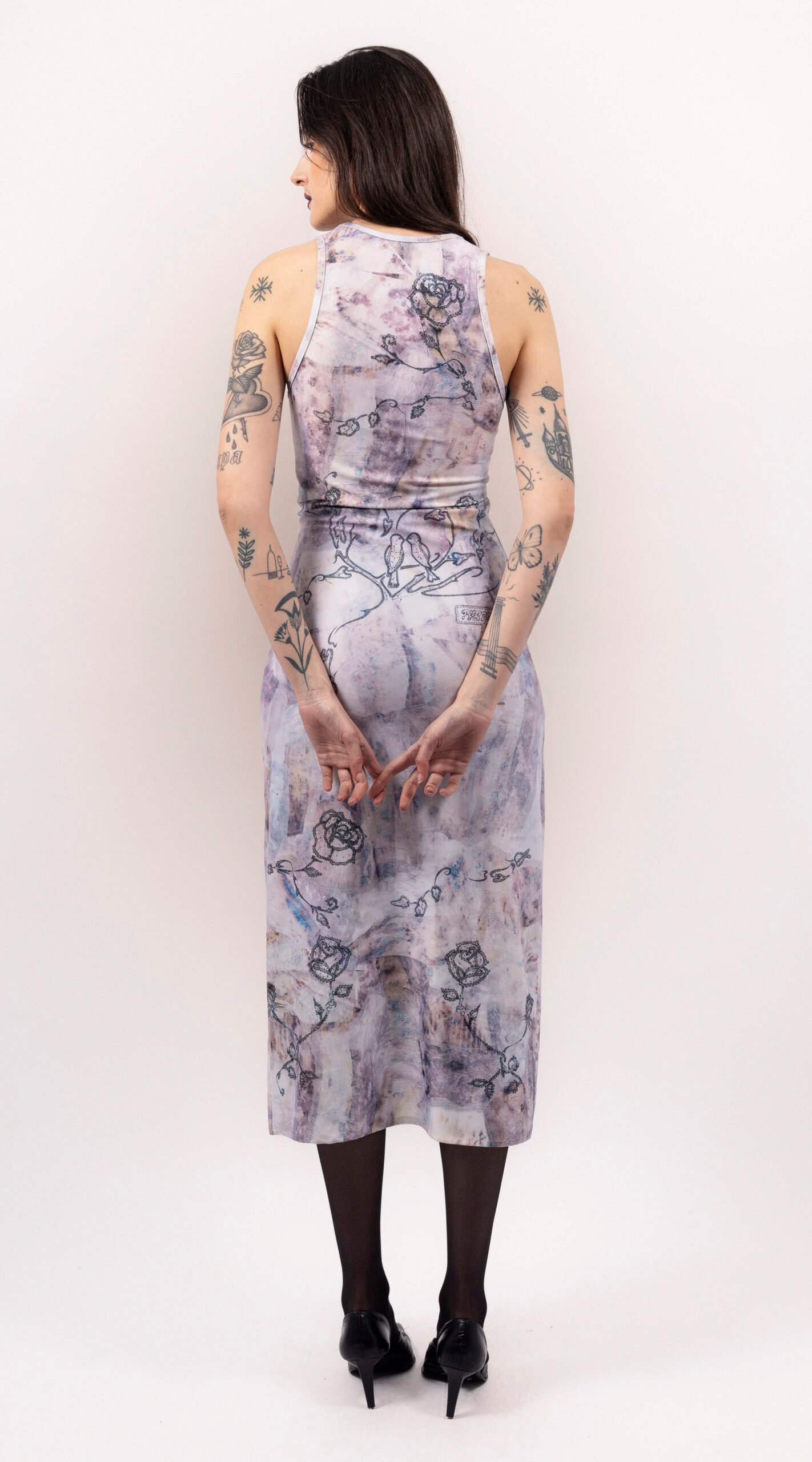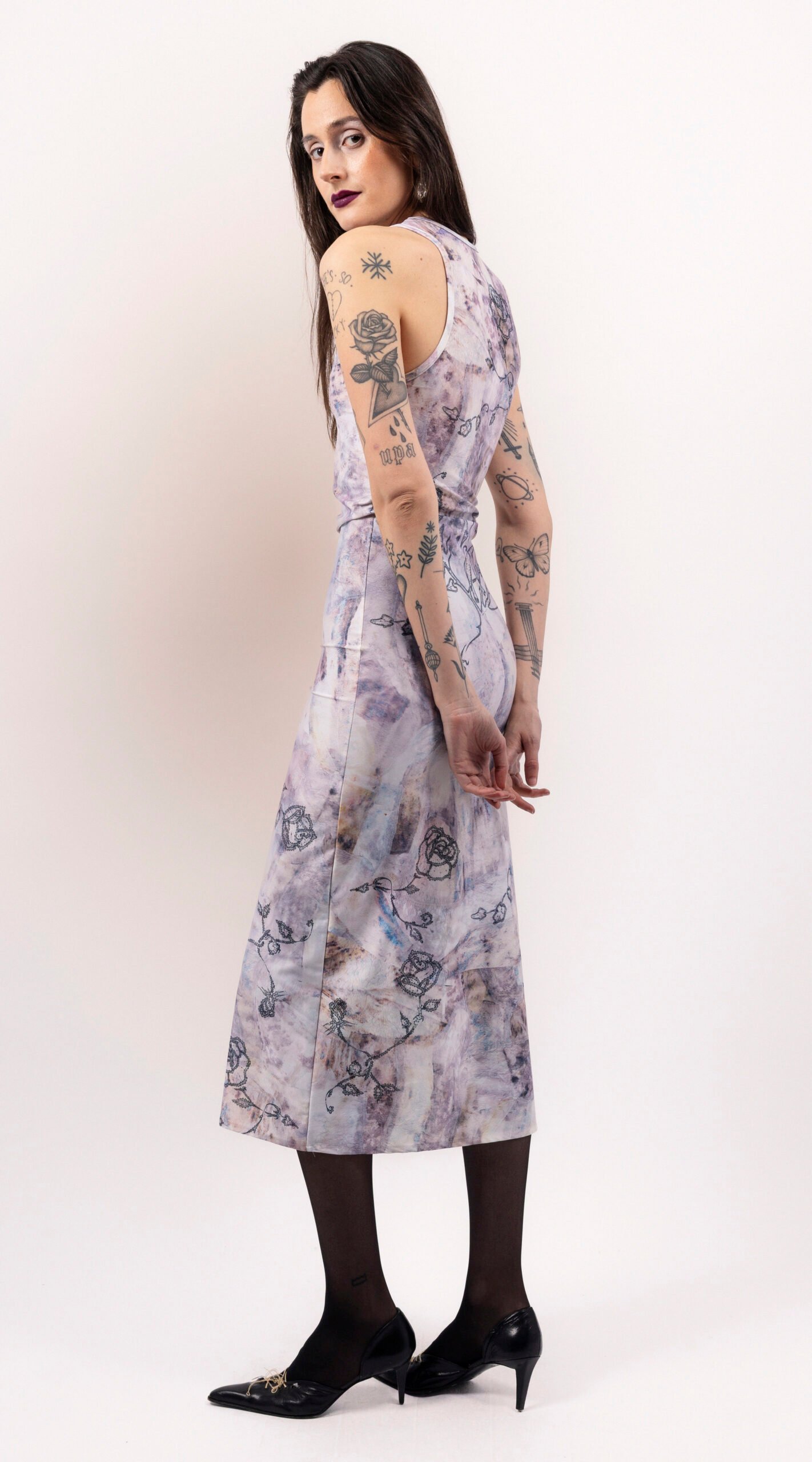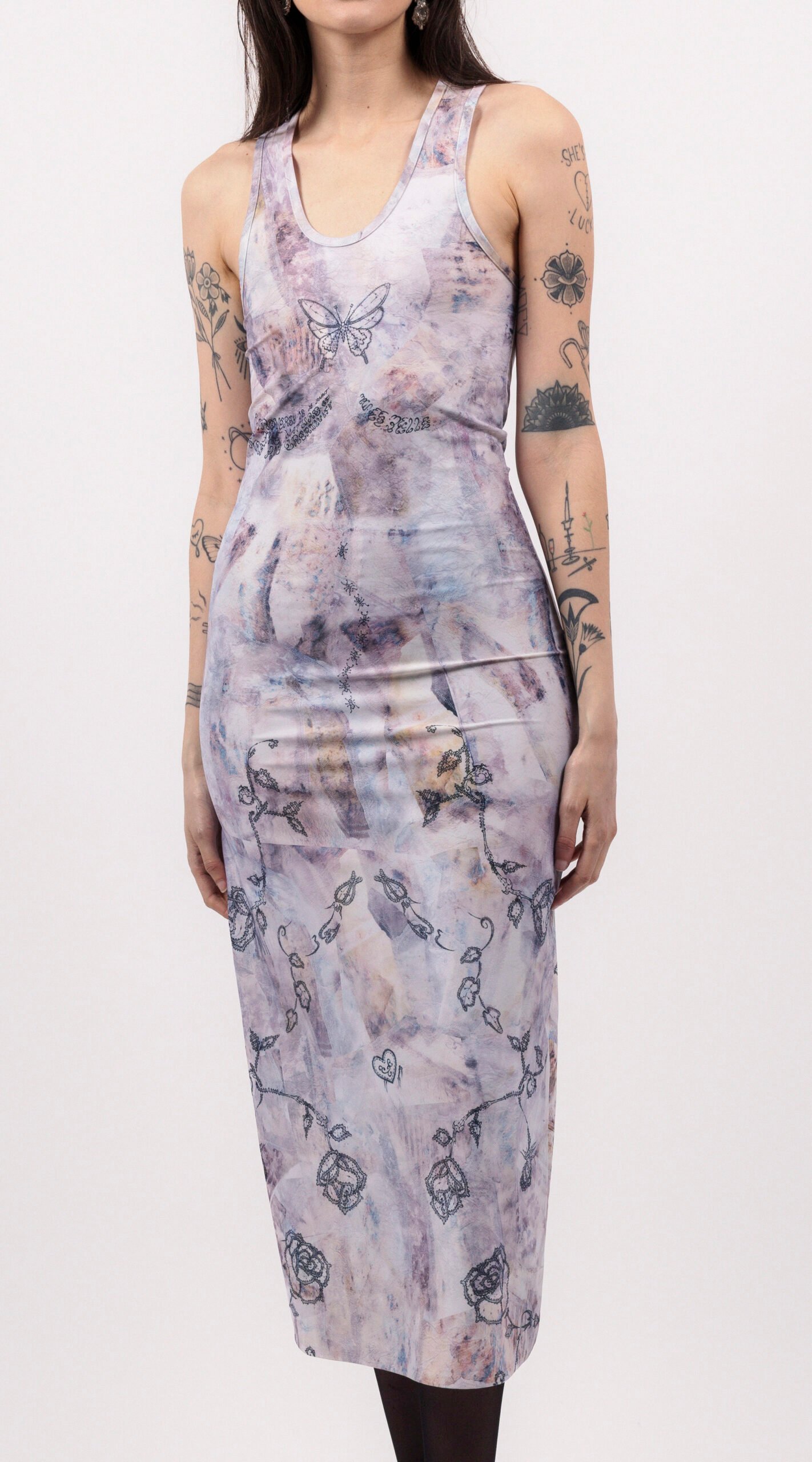 Colors: Tattoo print, Beige, Pink, and Black